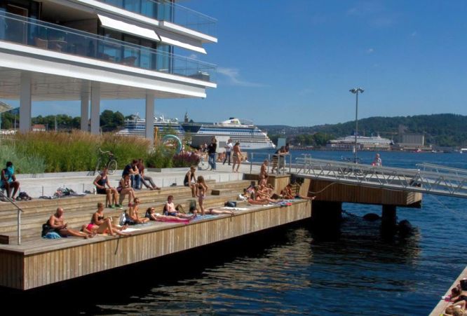 Aker Brygge and nearby Tjuvholmen are lively waterfront areas filled with restaurants, cafés, and galleries. You may enjoy dining by the sea or simply walking along the harbor while watching boats pass by.
