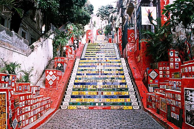 Admire the vibrant colors and intricate tiles of the Lapa Steps, created by Chilean artist Jorge Selarón.
